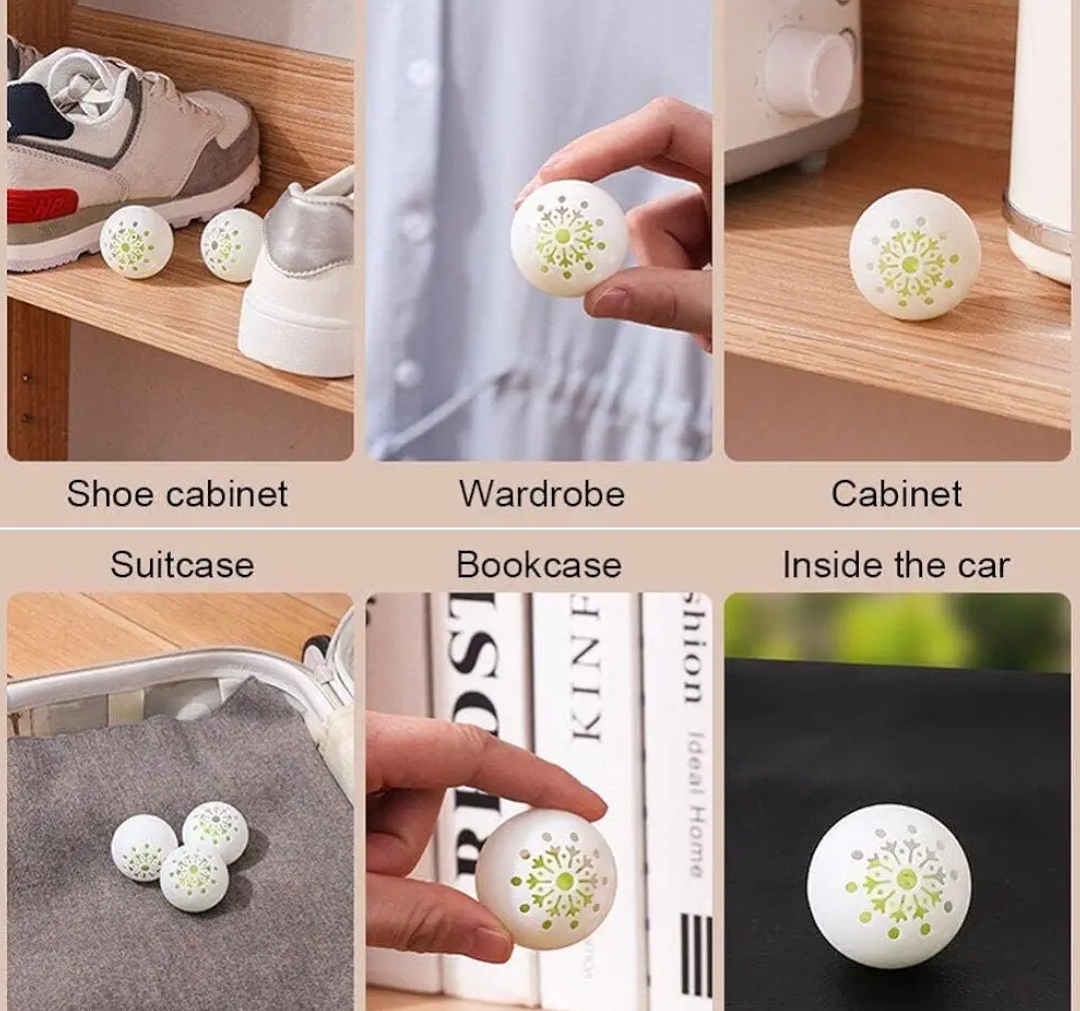خوشبو کننده قوی برای زندگی روزمره ، توپ های خوشبو برای از بین بردن بوی بد کفش ها، کیف های بدنسازی، کمدها، چمدان ، کشوها و تمام فضاهای کوچک دیگر طراحی شده اند.  این توپ های کتانی تضمین می کند که کفش شما تازه باقی می ماند و برای مقابله با بوی کفش بعدی آماده است.